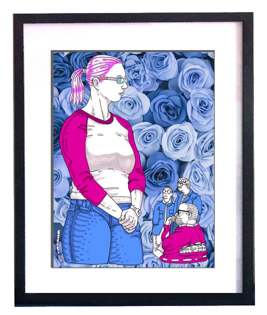 Sticker and she became unhappy with the portrait and appeared on my art exhibition now in June and signed