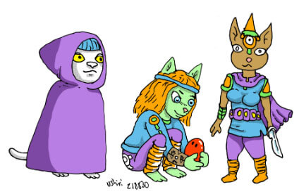 Dessa tre kvinnor ingår i Moxias systerskap och tillber Moxia religionen och är vänner till Moxia. De bor och arbetar i Malmhaugar.