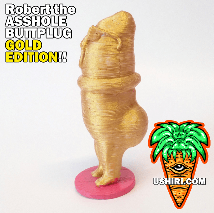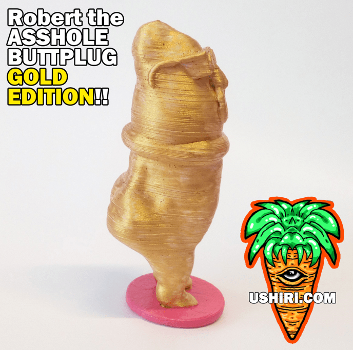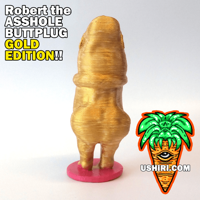 Robert the assholebuttplug pin “I got gold in my butt” below